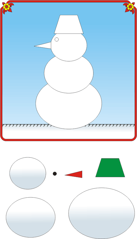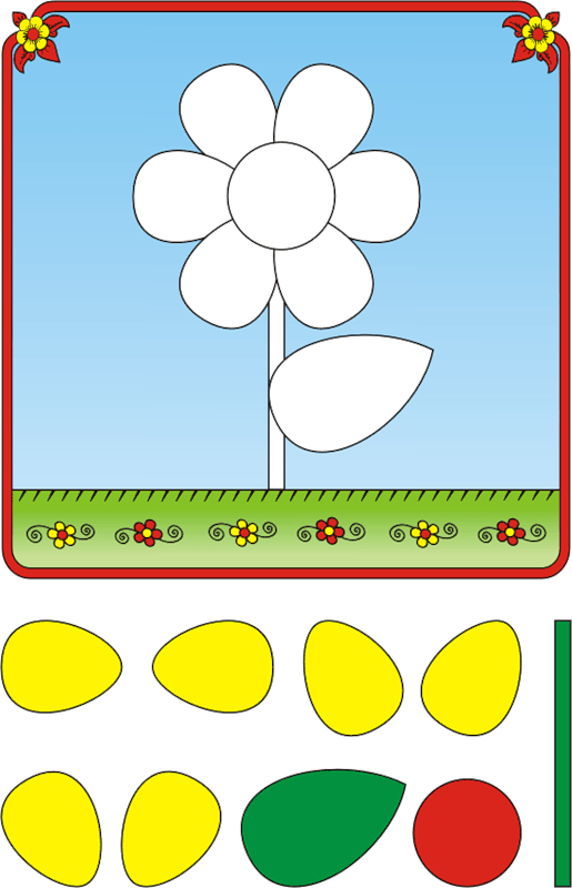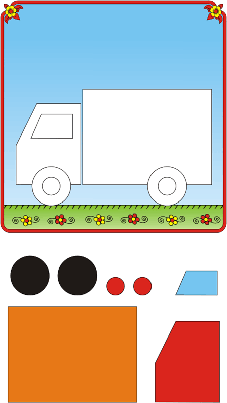Якщо у вас принтер чорно-білий, то роздрукуйте картинку, деталі виріжте, і використовуйте як шаблони, щоб перенести на кольоровий папір. Потім виріжте вже з кольорового паперу і приклейте на свої місця